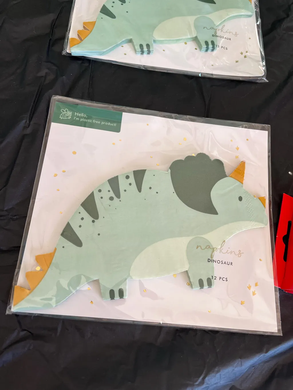 Unleash the roar-some fun at your child's prehistoric party with Green Triceratops Dessert Napkins! Shaped like adorable triceratops, these paper napkins feature a muted, dark green body with dark yellow spikes on the head and tail. Designed for ease and convenience, these disposable napkins are ideal for keeping little dino enthusiasts' fingers clean or serving with a Jurassic piece of cake. Whether celebrating a dino baby shower or a dinosaur birthday party, these dinosaur napkins transport your guests back to the age of the dinosaurs.